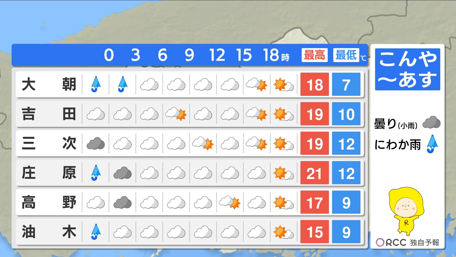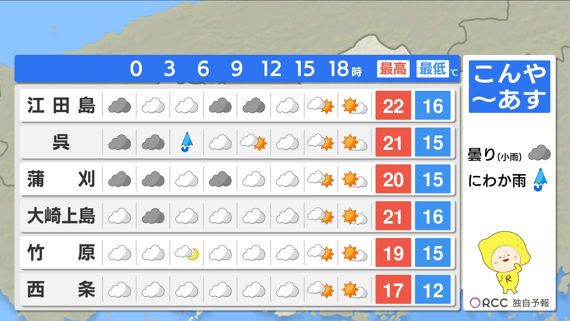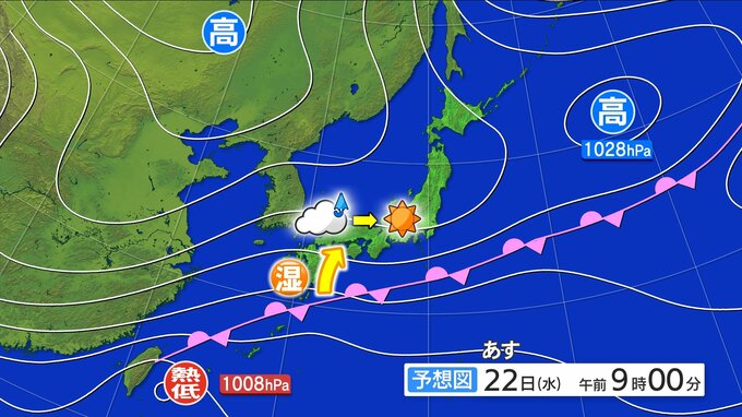 22日(水)夕方頃まで曇り空 次第に晴れる予想 肌寒い一日に 北部では最低気温1ケタ地点も