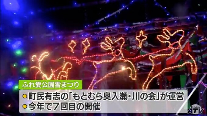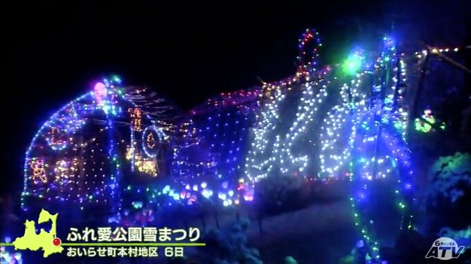 青森県おいらせ町では幻想的なイルミネーションが輝いています。もとむらふれ愛公園で開催中の「ふれ愛公園雪まつり」では、約2万8000個の光が町を彩っています。