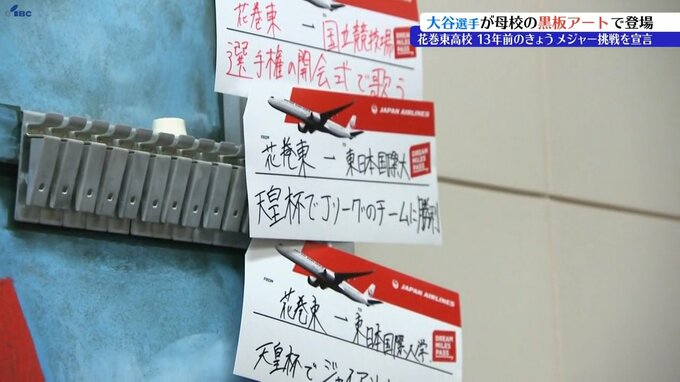 こちらが21日、花巻東高校の教室で公開された大谷選手の黒板アートです。