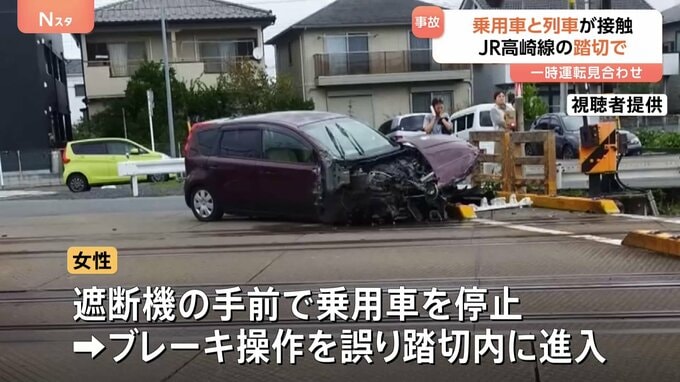 きょう午前、埼玉県鴻巣市の踏切で走行中の列車と乗用車が接触し、乗用車の女性がけがをしました。きょう午前9時前、埼玉県鴻巣市の踏切でJR高崎線の上り列車と乗用車が接触し、乗用車を運転していた54歳の女性が…