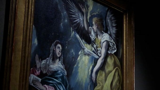 展示室に戻ってきたエル・グレコの「受胎告知」です。倉敷美観地区にある大原美術館では、来年4月からの再展示を予定していましたが、修復後の作品をいち早く見てもらいたいと、きょう(21日)から一時的に展示を再開しました。
