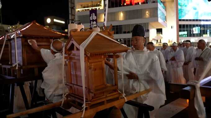 装飾品などを新しくした社殿にご神体を遷す「式年遷宮」が櫛田神社で始まりました。