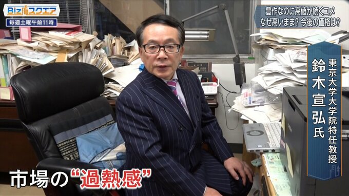 高値が続くコメの価格について、専門家は市場の“過熱感”を指摘する。