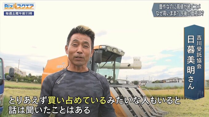 稲刈りの最盛期を迎えた埼玉県吉川市の農家『吉川受託協会』でも、「出来はまあまあ良い。“24年の3~4倍は獲れている”」と話す。