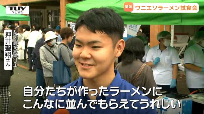 庄内農業高校3年 押井聖翔さん「自分たちが作ったラーメンにこんなに並んでもらえてうれしい。未利用魚なので、普段は味わえない魚を食べられるというので、レアなんだよというのをしっかり分かって欲しい」