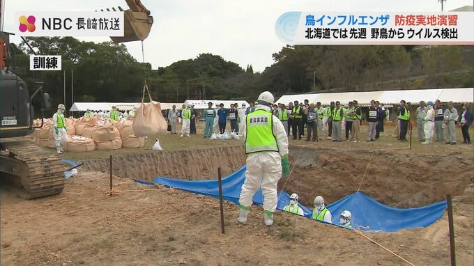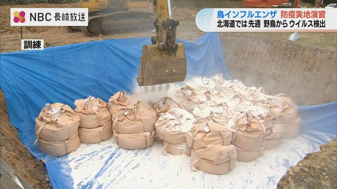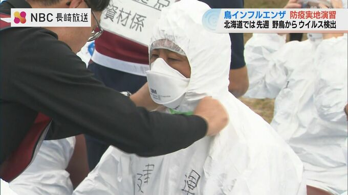 高病原性鳥インフルエンザが発生した場合、迅速に防疫作業ができるよう、長崎県諫早市で21日、関係者らによる実地演習が行われました。