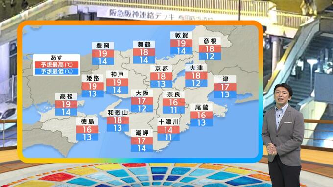 10月22日(水)の近畿地方は、さらに肌寒さが強まるでしょう。 午前を中心に冷たい雨が降りそうです。秋雨前線が近畿のすぐ南に停滞し、前線に近い南側の地域を中心に雨が降るでしょう。午前中は雨雲が京阪神…