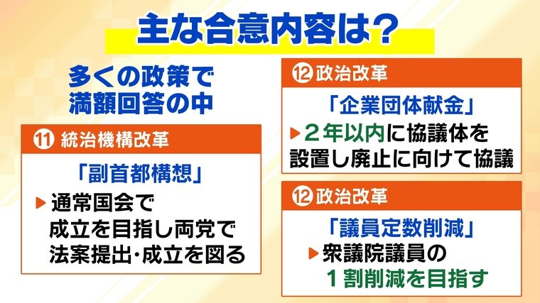 ーーー合意内容にある政治改革の政治とカネの問題で、維新は「企業団体献金」廃止を求めていましたが、2年以内に協議体を設置し、廃止に向けて協議ということです。