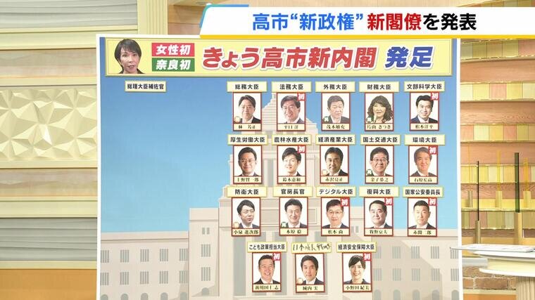 辻元氏が番組に生出演している最中、高市新内閣の顔ぶれが発表されました。