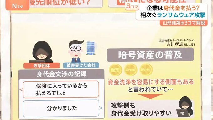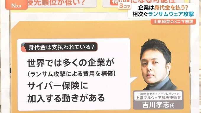 吉川さんは「実際に企業側が身代金を支払ったという事実の把握は非常に困難ですが、世界では多くの企業が(ランサムウェア攻撃による費用を補償する)サイバー保険に加入する動きがある」といいます。