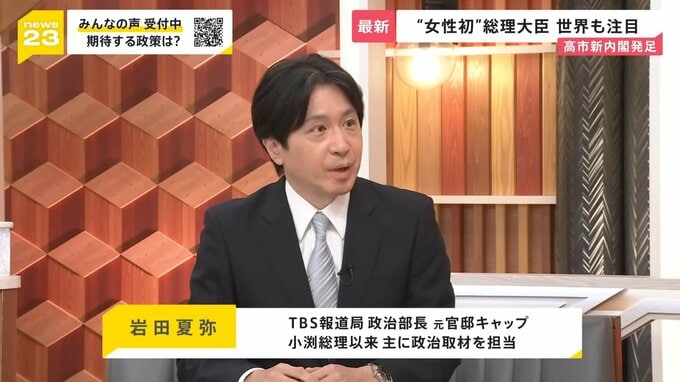 政治の世界なのでどうしても前例が大事になってくる。女性首相誕生ということにはすごく意味があるし、高市氏の場合は非世襲で、女性首相という2つの要素を持ち合わせてここまできたのはすごいことだと思います。