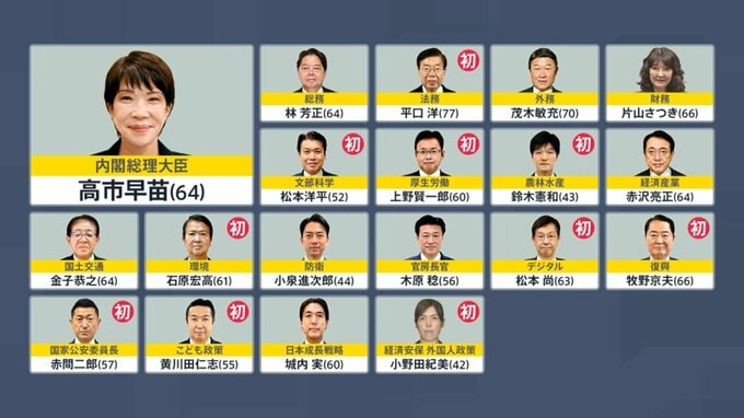 高市内閣の顔ぶれを見ると、注目された女性の閣僚は2人でしたが高市総理としては「機会平等で。とにかく適材適所」という言い方を強調していました。