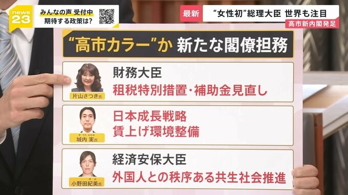 “女性初”総理大臣 閣僚担務に“高市カラー”か