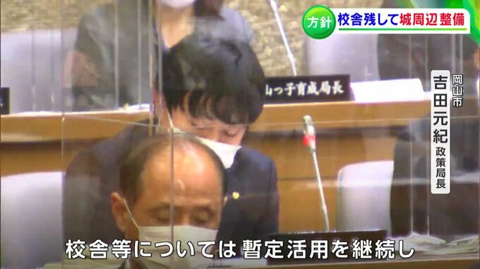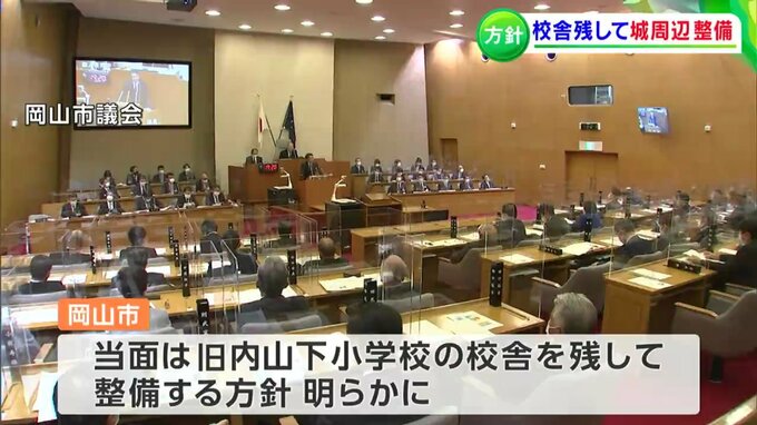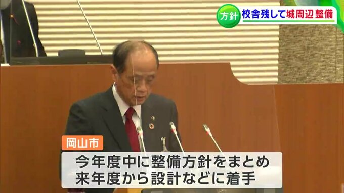 きょう(7日)の岡山市議会で、担当局は「民間事業者との対話などを踏まえ、当面は校舎を残して整備する方針」を明らかにしました。