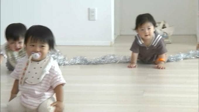ハイハイでゴールを目指そうとする赤ちゃんたち。今月(10月)17日、岡山市で開かれたハロウィーンイベントには、約50人の親子連れが参加しました。