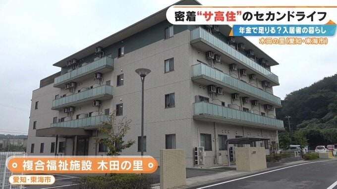 名古屋駅から名鉄で約17分、愛知県東海市の主要駅・太田川駅。そこから歩いて8分の「複合福祉施設 木田の里」。日々の暮らしのケアや安否確認が付いている賃貸住宅を指す「サービス付き高齢者向け住宅」、通称「サ高住」です。