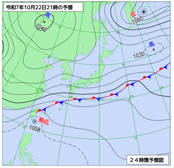 【台風情報・22日午後4時20分に更新】台風24号ゆっくりとベトナムへ… 先島諸島付近の“台風のたまご”?「熱帯低気圧」は今後どうなる? 日本への影響は? 今後の天気も【雨風シミュレーション・気象庁最新情報】 青森テレビ 2025年10月22日(水) 15:15 国内 【天気図(最新・24時間・48時間予想図あり)】 気象庁HPより 気象庁HPより 気象庁HPより