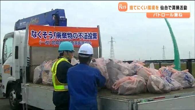 不法投棄をなくそうと22日に仙台市内の沼で、産業廃棄物処理業者らがパトロールを兼ねた清掃活動を行いました。