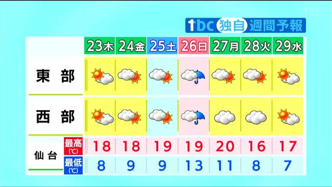 曇りや晴れの日が多いですが、日曜日は、発達する低気圧の影響でまとまった雨が降るでしょう。