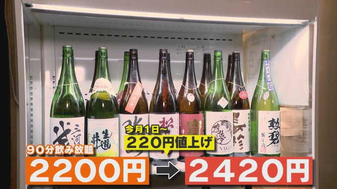 こちらのお店では、40種以上の日本酒が飲み放題。90分2200円でしたが、仕入れ値の高騰を受け、10月から2420円に値上げせざるを得ませんでした。