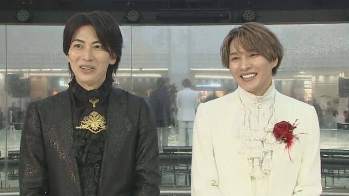 この日も披露した「十五夜の月」について、拓也さんは“所さんが僕たちを見て、その日に書いてくださった。所さんからは「2人は芸歴長いから、好きなように歌いな」っていう感じで背中を押していただいた”と、所さんとのやりとりを告白。「所さんは天使と悪魔のどっちだった?」と記者に聞かれると、翔司さんは“悪魔の部分は見たことがない。本当に優しくしていただいています”と、感謝を述べました。
