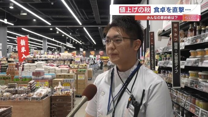 ロッキー水前寺店スーパーバイザー 中熊飛太さん「レトルトパックご飯、調味料関係、飲料水を中心に値上げしている。10月で100品目近くが値上げになっている」