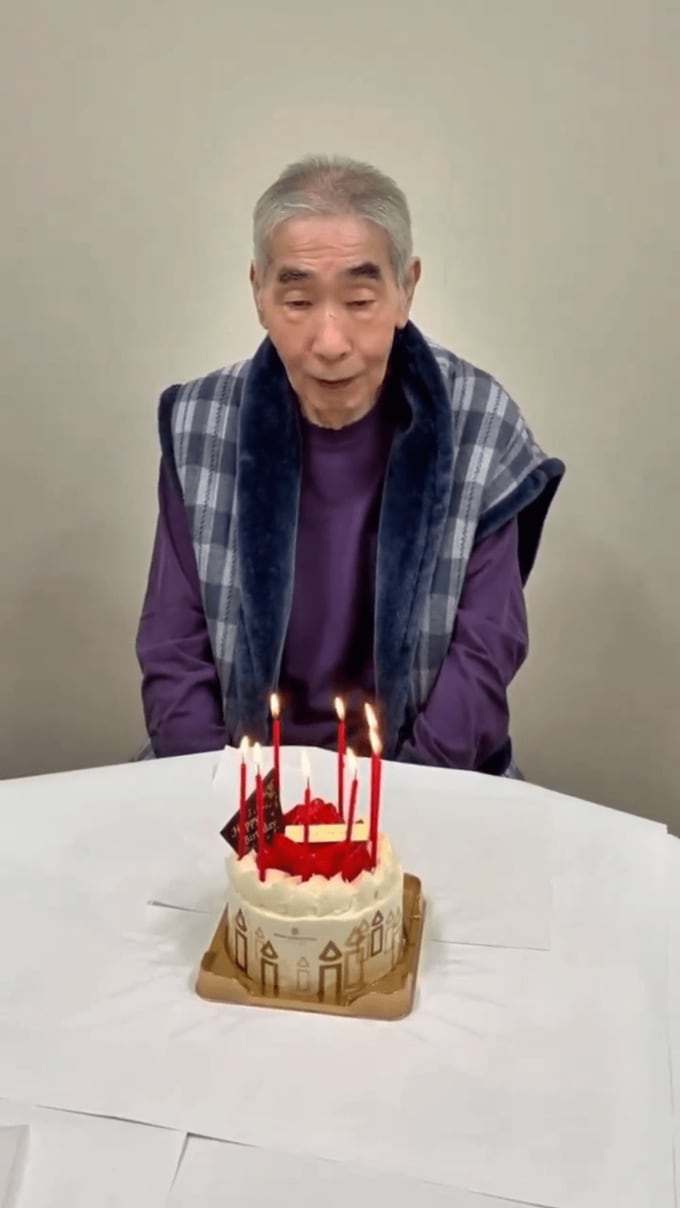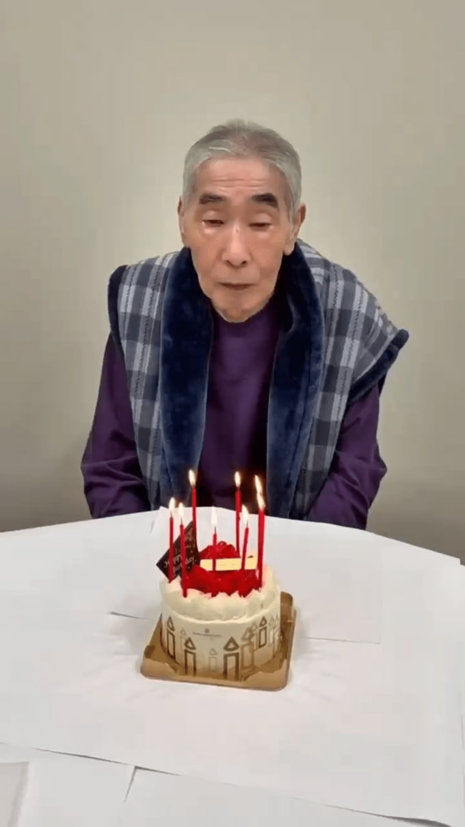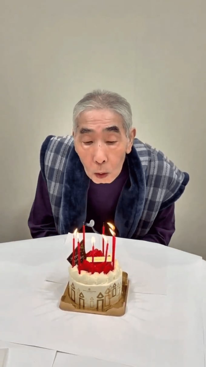 投稿された画像では、蛭子能収さんがバースデーケーキを前に笑顔を浮かべる姿や、ロウソクの炎を吹き消す様子などが見て取れます。