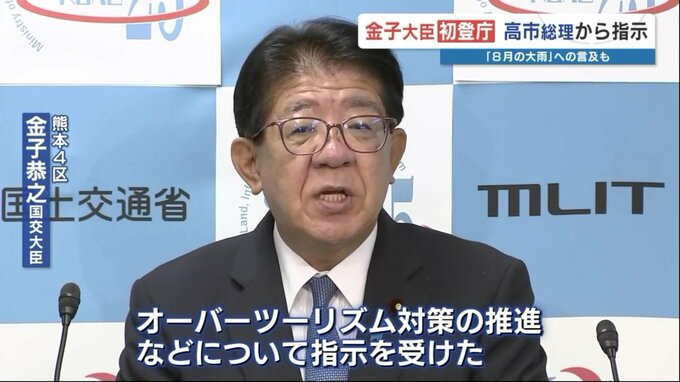 金子恭之 国交大臣「交通網、物流、インフラ整備、観光振興を通じた地域の活性化やオーバーツーリズム対策の推進などについて指示を受けた」