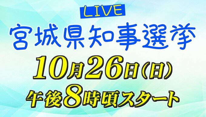 tbcでは、26日午後8時ごろから宮城県知事選挙をLIVE配信でお伝えします。