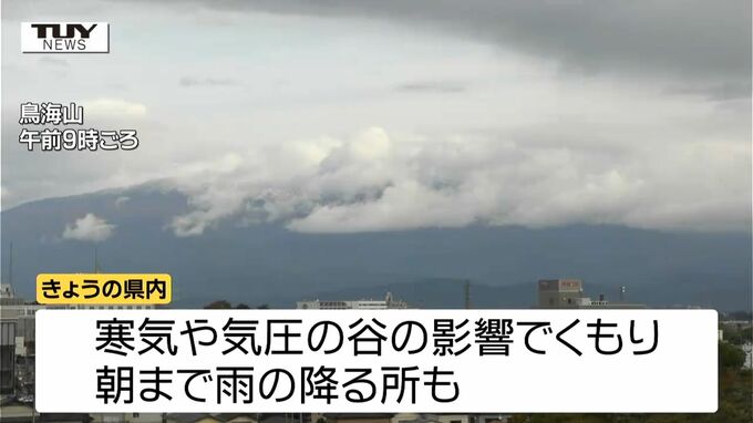 きょうの県内は寒気や気圧の谷の影響でくもりで、朝まで雨の降る所がありました。