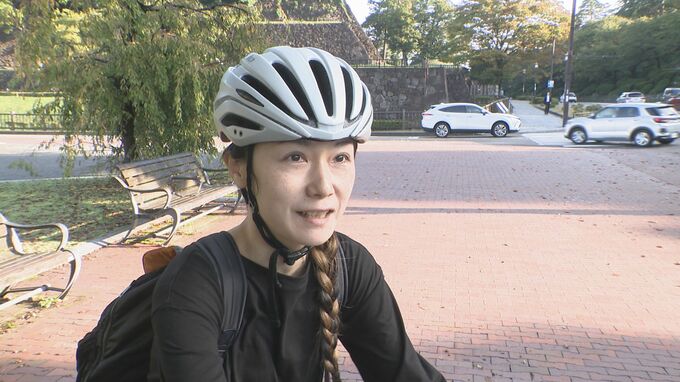 通勤中の女性「通勤する人はヘルメットを被る人が見られるように感じるが、高校生はまだまだかな。自分の体を大事にするというのと、もし私になにかあった時、家族や職場の方に迷惑かけるので」