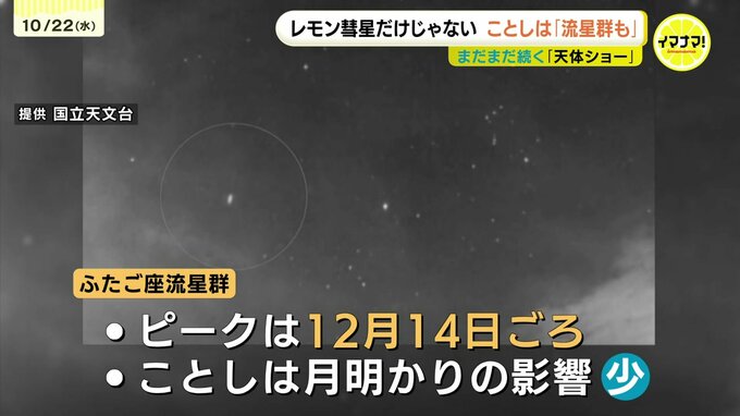 ピークは毎年12月14日ごろ。ことしは、例年と比べ月明かりの影響が少なく、絶好の条件が揃っているそうです。