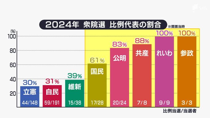 法案が可決すれば、比例代表の割合が大きい国民民主党や公明党が議席を減らす可能性があります。