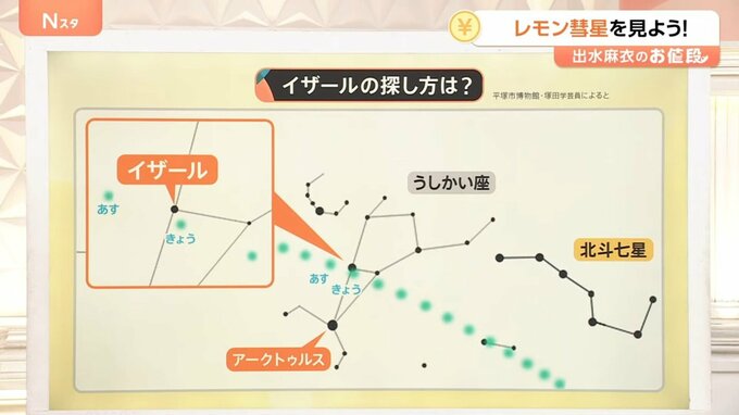 双眼鏡やオペラグラスで円の中に入れていただくと、周辺にあるのがレモン彗星ということになります。