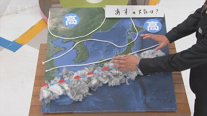 きょう、曇って雨が降った要因はこの前線による雲です。