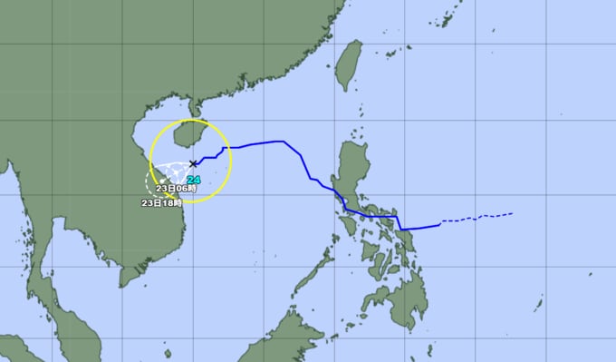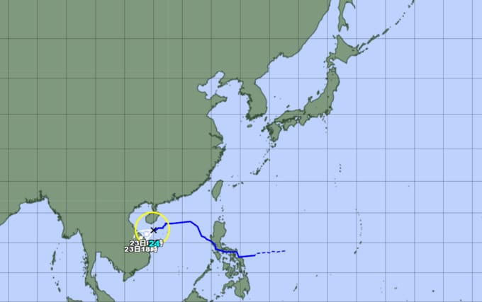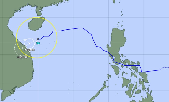 進行方向、速さ 西南西 10 km/h (6 kt)