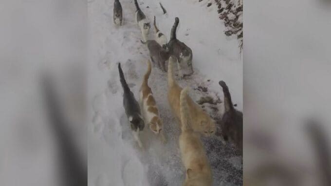 能登半島地震発生から1か月後の志賀町の映像。冷たい雨から身を守ろうと無数のネコが納屋の中に身を寄せていました。同じ時期の能登町では、お腹を空かしたネコが人の姿に気づき、冷たい雪の上にもかかわらず近寄ってきます。