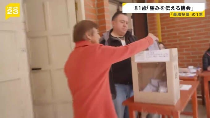 ベルタさんも投票所にやってきました。高齢者は投票の義務を免除されていますが...