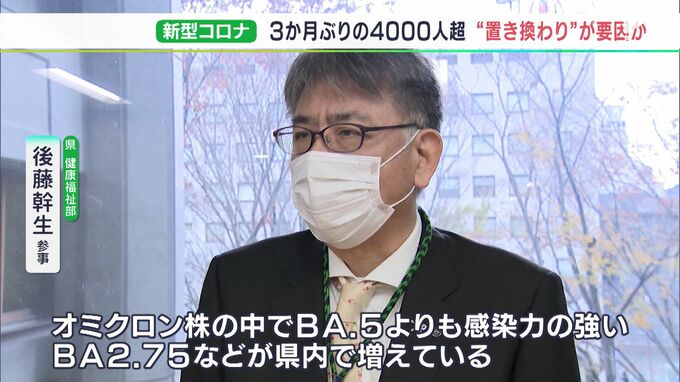 「オミクロン株の中でBA.5よりも感染力の強いBA2.75などが県内で増えている。ゆっくり入れ替わってゆっくり増えている」