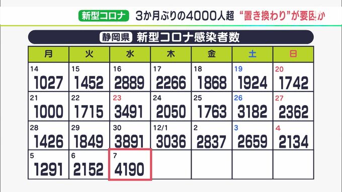 12月7日、静岡県内で新たに4190人が新型コロナウイルスに感染したことが分かりました。感染者が4000人を超えたのは約3か月ぶり。ウイルスの置き換わりが大きな要因とみられています。