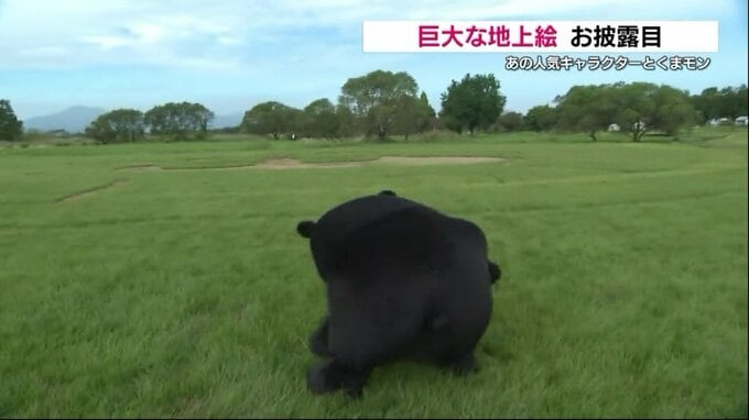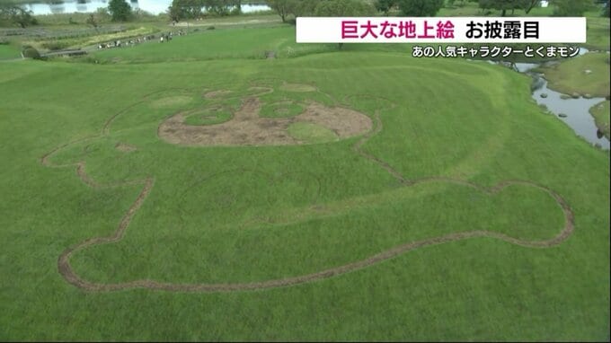 熊本市東区の公園に、巨大なくまモンの地上絵が登場しました。今年は、あの「国民的幼稚園児」と共演です。