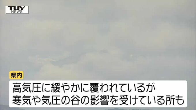 県内は、高気圧に緩やかに覆われていますが、寒気や気圧の谷の影響を受けている所があります。