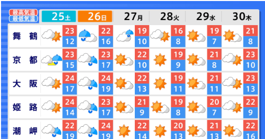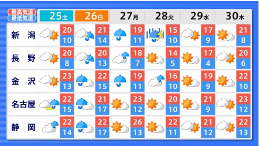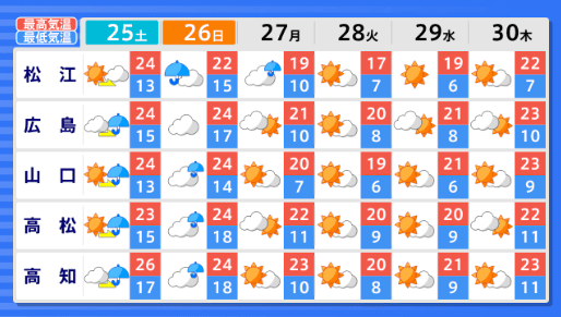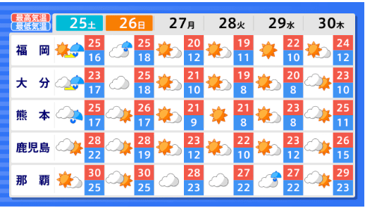 台風24号(フンシェン)は 熱帯低気圧に変わる 今後の全国の天気を地方ごとに 気象庁 テレビユー山形 2025年10月23日(木) 12:37 国内 ■今後の全国の天気を地方ごとに 画像はTBS NEWS DIG Powered by JNNより 画像ありの記事を最初から https://newsdig.tbs.co.jp/articles/-/2245013?display=1