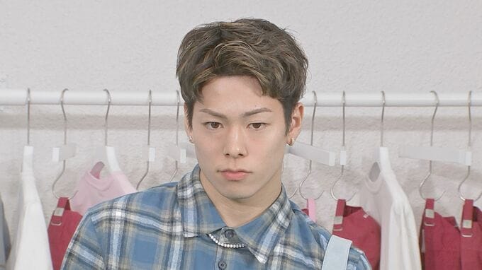 EMISのフルコーディネートで登場した3人。RIKUさんはブルー、MIIHIさんはブラックのチェックシャツにニットを合わせ、リンクコーデを披露しました。