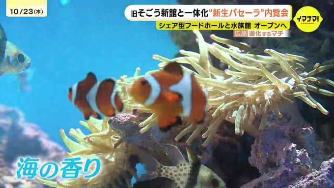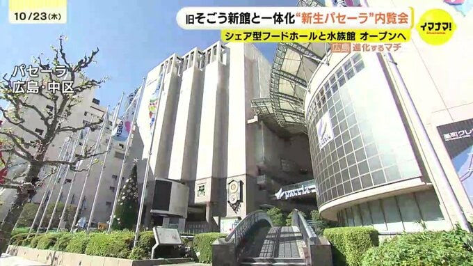 広島市中心部に、新たなにぎわいの拠点がまもなく誕生します。2年前に閉館した旧そごう広島店新館と、商業施設のパセーラが合わさった「新生パセーラ」。ここにシェア型フードホールと、水族館がオープンします。オープンを前にきょう開かれた内覧会に行ってきました。