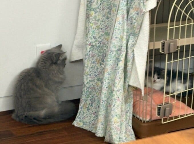 この投稿に、「ラヴィ君のお鼻がピンクで可愛い」「血が繋がった子同士、すぐに仲良くなりますよ。楽しみですね」「ミルリィちゃん興味津々、ずっと監視(笑)してますね」「シャーシャー言ったのね。かわいいお顔で」などの声が寄せられています。