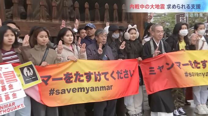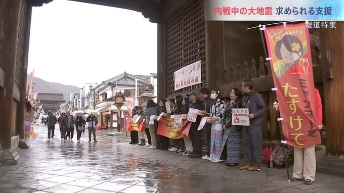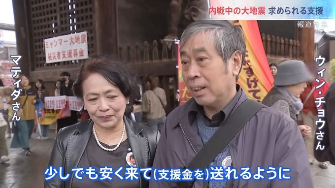 大地震から1か月後の2025年4月。長野県の日本人支援者が呼びかけ、ミャンマーの被災地への募金が行われていた。