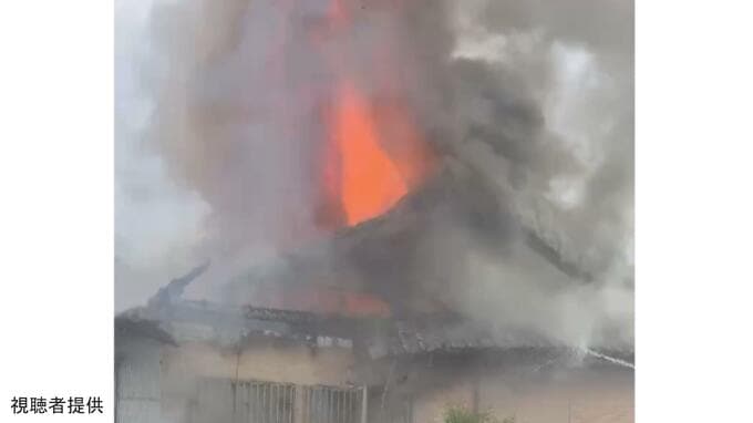 警察と消防などによりますと、22日午前11時20分頃、付近住民から「建物から白い煙が上がっている。炎は見えない」との通報がありました。火は燃え広がって炎上、およそ1時間半後の午後0時50分に消し止められましたが、木造瓦葺平屋建ての住宅一棟が全焼しました。