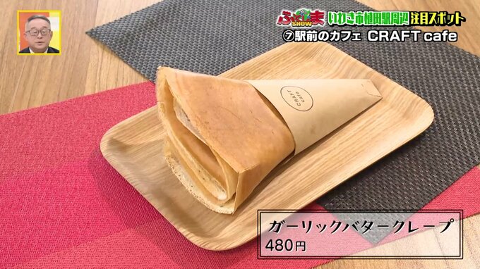 甘い系から惣菜系までそれぞれ10種類以上のクレープが揃い、なかでも生チョコレートとイチゴを組み合わせた「生チョコ」(730円)は特に人気です。変わり種の「ガーリックバタークレープ」は、クレープとは思えないパリパリ食感とガーリックの香ばしさが特徴で、おつまみ感覚で楽しめる一品です。
