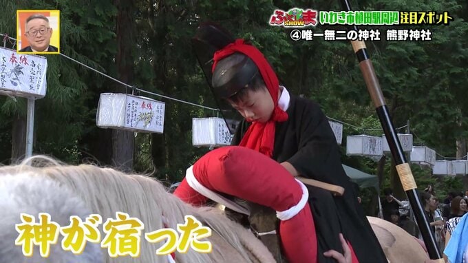 さらに、天皇の使いである「勅使」は7歳未満の男の子が務め、祭りの2日間は地面に足をつけないよう神社まで運ばれます。役目を終えた勅使が神前で居眠りすると、それを見た人々は「神が宿った」と静かに手を合わせるという伝統が今も続いています。